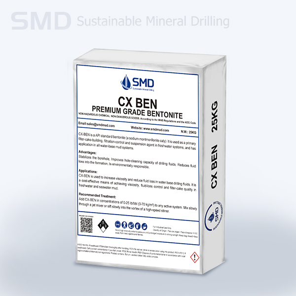 Bentonite CX-BEN is an API standard bentonite (a sodium montmorillonite clay) It is used as a primary filter-cake-building, filtration-control, and suspension agent in freshwater systems, and has application in all water-base mud systems.